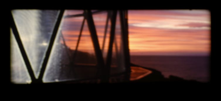 The grainy 16mm film, ticking through the intricate looping film projector, foregrounds the ephemerality of light through its precarious physicality.