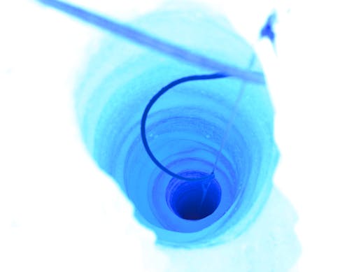 I get off the helicopter and Coline Bouchayer, a PhD researcher overseeing the project, tells me the good news. We let out a sigh of relief – John Hult, the project engineer, and Svein Oland, a mechanic from the Norwegian Polar Institute, are particularly content. We had tried to carry out the same operation last spring, but the -30°C temperatures froze the water in the drilling system, making it impossible to continue. This time, the engines that are still running bring a smell of diesel to the frozen lands around us.