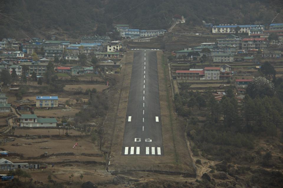 Tenzin-Hillary Airport in Lukla, Nepal, has not just one but all of these dangers.