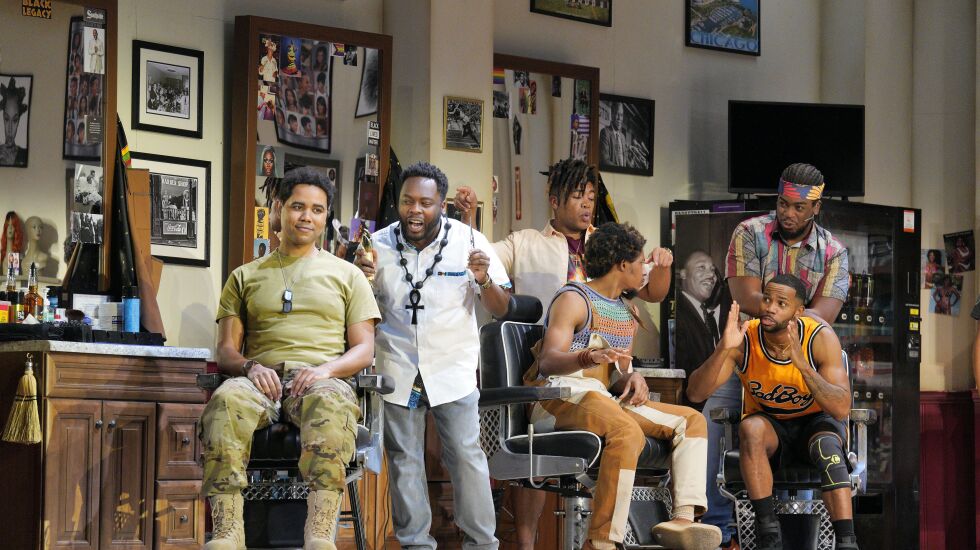 Part 1 has a more breezy, slice-of-life feel as the work introduces the main characters who populate the barbershop and neighborhood, some ably brought to life by the production’s five ubiquitous dancers. But it turns much darker in the second half, when Cece is swept up and tased by the police trying to break up the numbers racket and the shop crew sings a kind of Black Lives Matter anthem, “Ain’t Nobody Care About Us, We All We Got.”