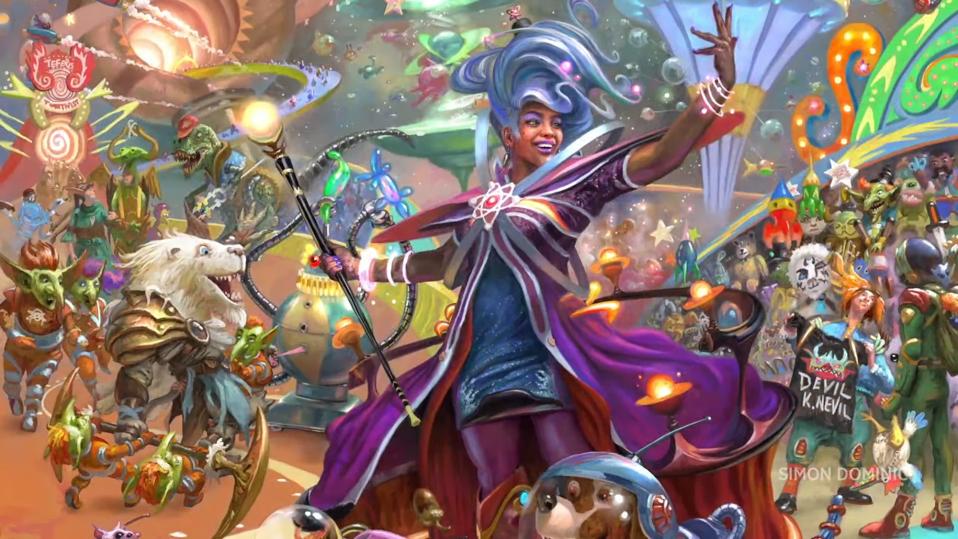 This is MTG's first fully sci-fi set, free of the fantastical trappings underpinning other settings like Kaladesh or the new, cyberpunk-y Kamigawa. According to lead designer Mark Rosewater, it's combining retro sci-fi, carnival and amusement park aesthetics in the first ever top-down Un-set (top-down meaning the themes and flavor were decided before any mechanics).