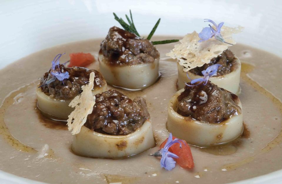 The signature dish created by Baracchi is “Stuffed Pasta Rings with Pork Ragù in a Cannellini Bean Soup,” rustic in its roots but assembled in a modern and fresh way. The dish stands as a tribute to the autumn season and Chef Baracchi’s native land of Tuscany, Italy. At the same time, the ingredients are very accessible to the United States as well. Chef Baracchi studied the preparations and composition to be able to easily be reproduced in a busy kitchen during service.