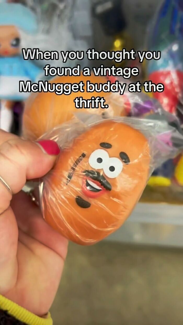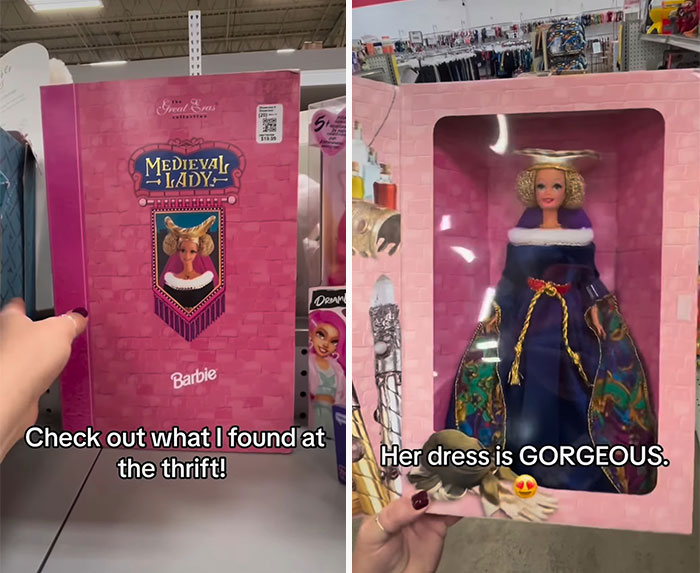 “I’ve always loved thrifting and finding random, sometimes weird items,” she told us. “I started out documenting my wacky finds on Instagram and TikTok, and over time I realized the content people responded to most were the nostalgic pieces that reminded me and my followers of our childhoods. Whether it’s a doll you had growing up or a body spray bottle that’s 30 years old, there’s so much room for reflection in the things you find at thrift stores.”