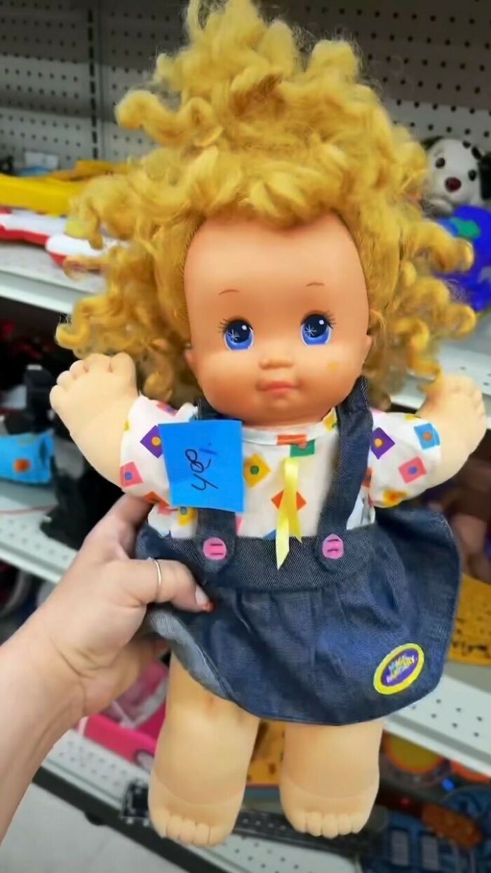 One of Stefany’s recent prized finds is a working Lil’ Miss Singing Mermaid doll from 1989. This toy was part of the mermaid craze that took off in the 90s following the success of Disney’s The Little Mermaid. With its adorable face, bushy blonde hair, and jeweled tail, it captured the hearts of many children. The doll was a particular hit because it sang a sweet tune when squeezed and even worked underwater—of course, Stefany was no exception to its charm.