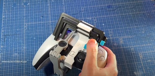 Using a 3D printer, Akaki Kuumeri designed and produced an attachment for the left joystick on the controller. When secured and used on any firm surface like a table (or your leg), the extension allows the gamer to move the left stick just by pressing and maneuvering the attachment against the ground. Kuumeri also moved the L1 and L2 buttons over to the right side so they can be accessed right next to R1 and R2.