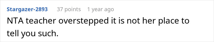 People unanimously said that the author of the post did nothing wrong and that the teacher was out of her depth