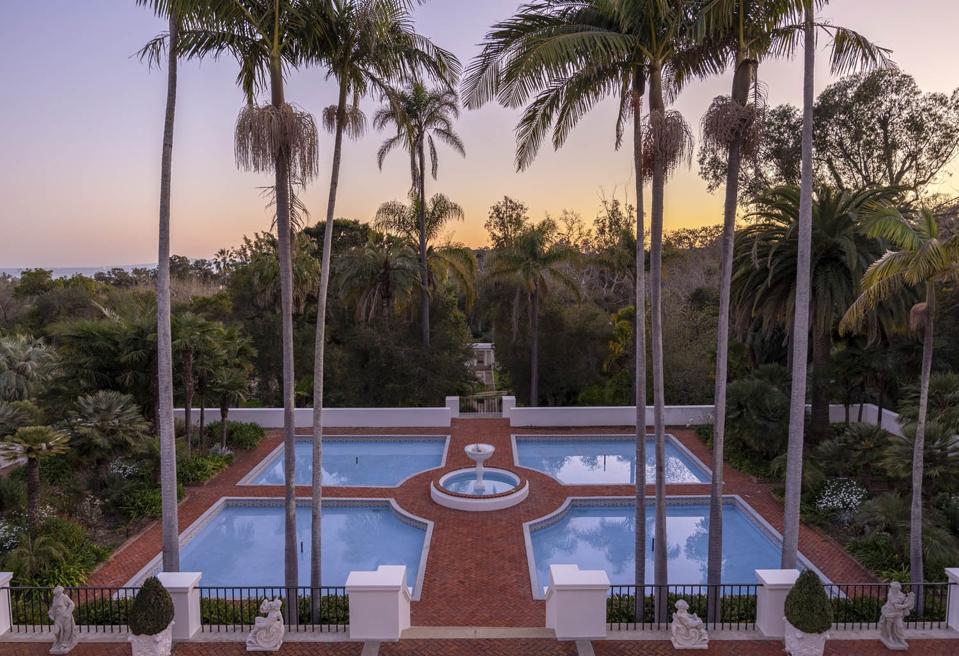 Designed by celebrated architect Bertram Goodhue for real estate tycoon James Waldron Gillespie—who is said to have traveled to Montecito because of its likeness to the fair-weather climates of the Mediterranean—the 10-acre estate was completed in 1906.