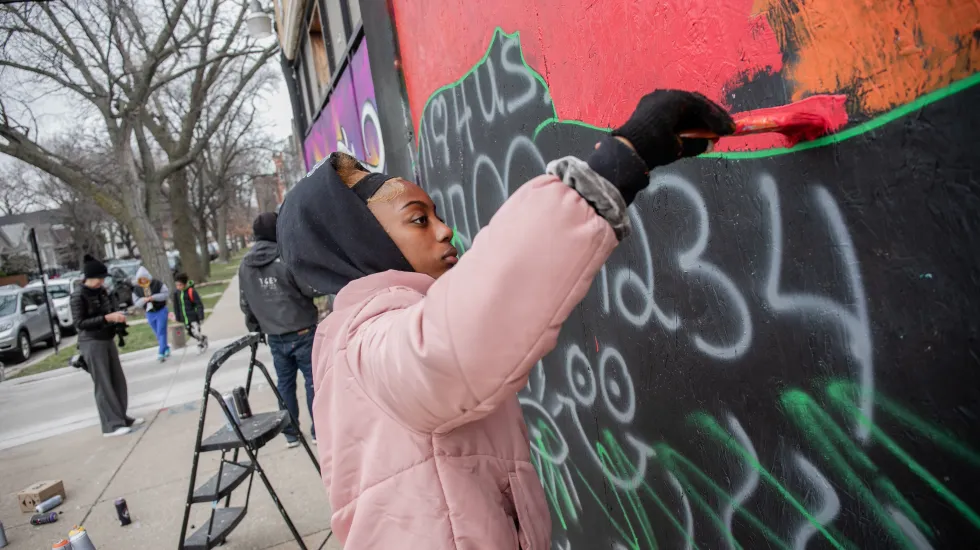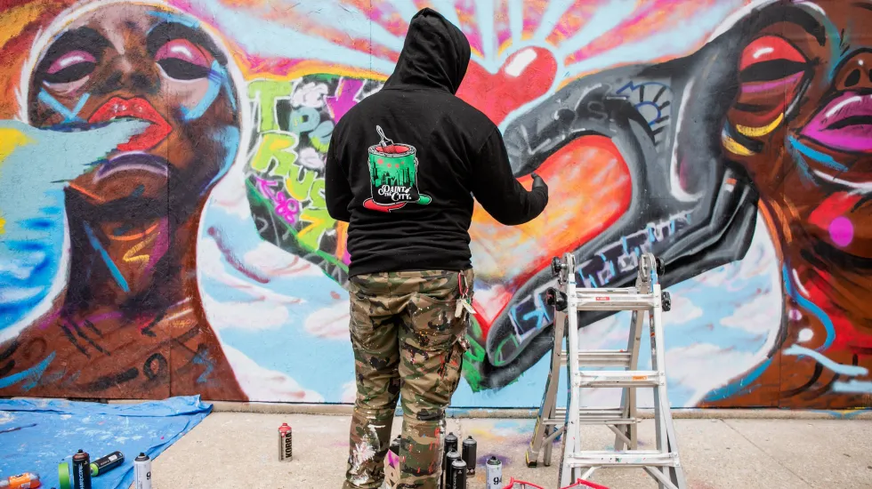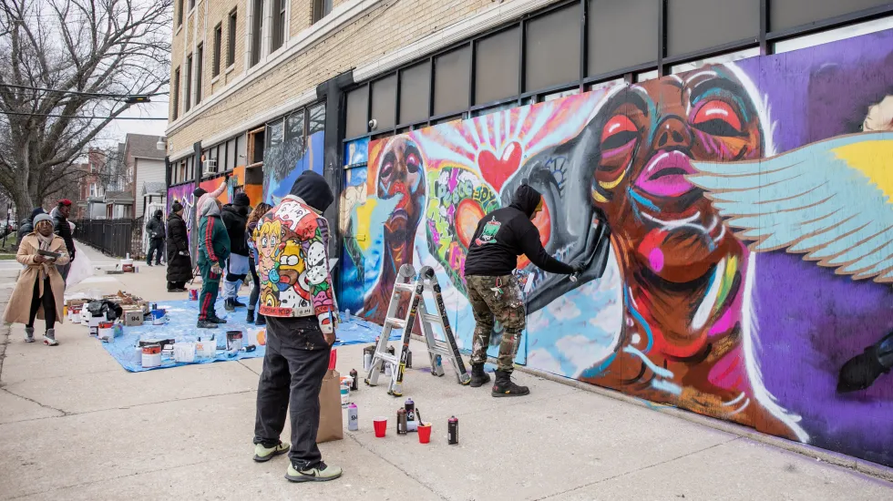 The North American Tour of the Tony Award-winning musical commissioned a mural in partnership with Paint the City to support and celebrate the work of local artists. The mural, located at Rockwell and Milwaukee, was painted Tuesday by a group of local artists from Paint the City, an artist-led initiative working to“heal the city through art,” and YourPassion1st, a local nonprofit that coaches and mentors underserved teens and young adults through project-based learning.