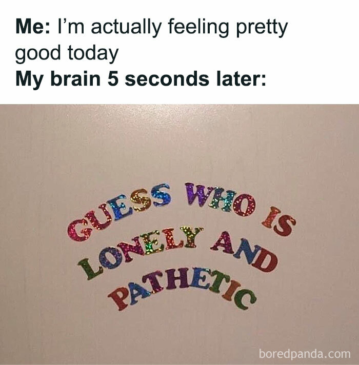 "Mental health issues are often wrapped in shame," Arzt told Bored Panda. "That shame often says, 'I'm alone in this. Nobody else understands. Something is deeply wrong with me.' While memes don't exactly 'fix' that real pain, they can provide a sense of shared camaraderie. There's such a powerful validation in just knowing you're not alone and that your struggles are not solely yours."
