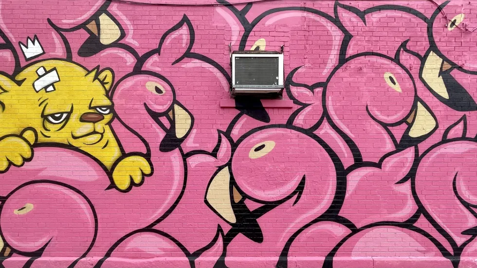Titled “Lovers Like Flamingos,” Rivera says the idea for the wall came from an affinity for flamingos he and his daughter share.