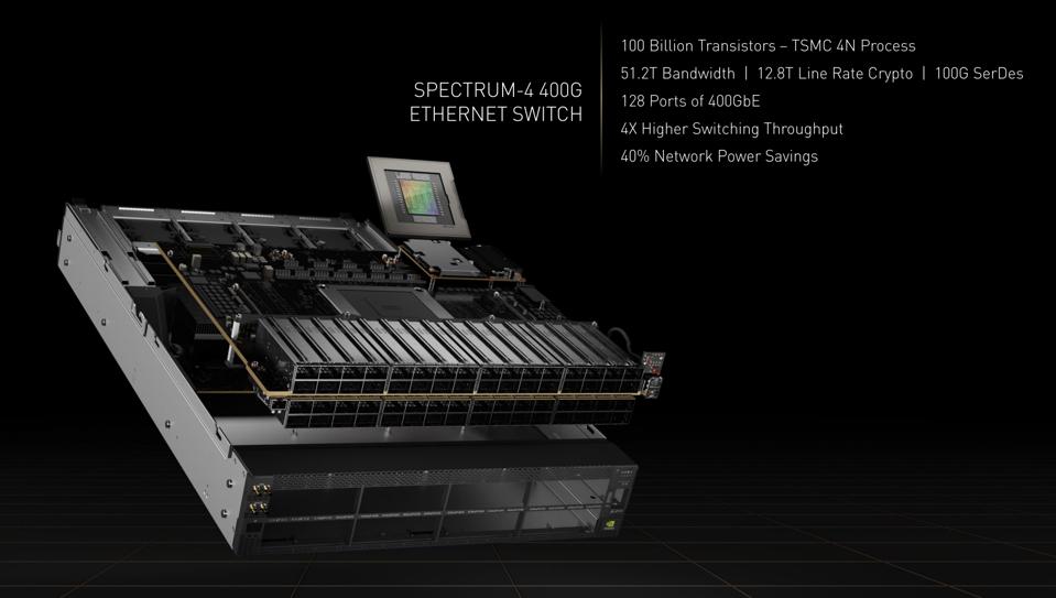 The powerful combination of a DPU and software-based networking may give NVIDIA an edge in the networking market. It now has all the components to provide networking, security, and processing in one package. It’s also been ramping up its own networking hardware portfolio, including a new line of datacenter switches. Its new Spectrum-4 Ethernet switch provides 51 terabytes in throughput and 12.8 terabits per second of line-rate encryption. NVIDIA also claims 40% in power savings.