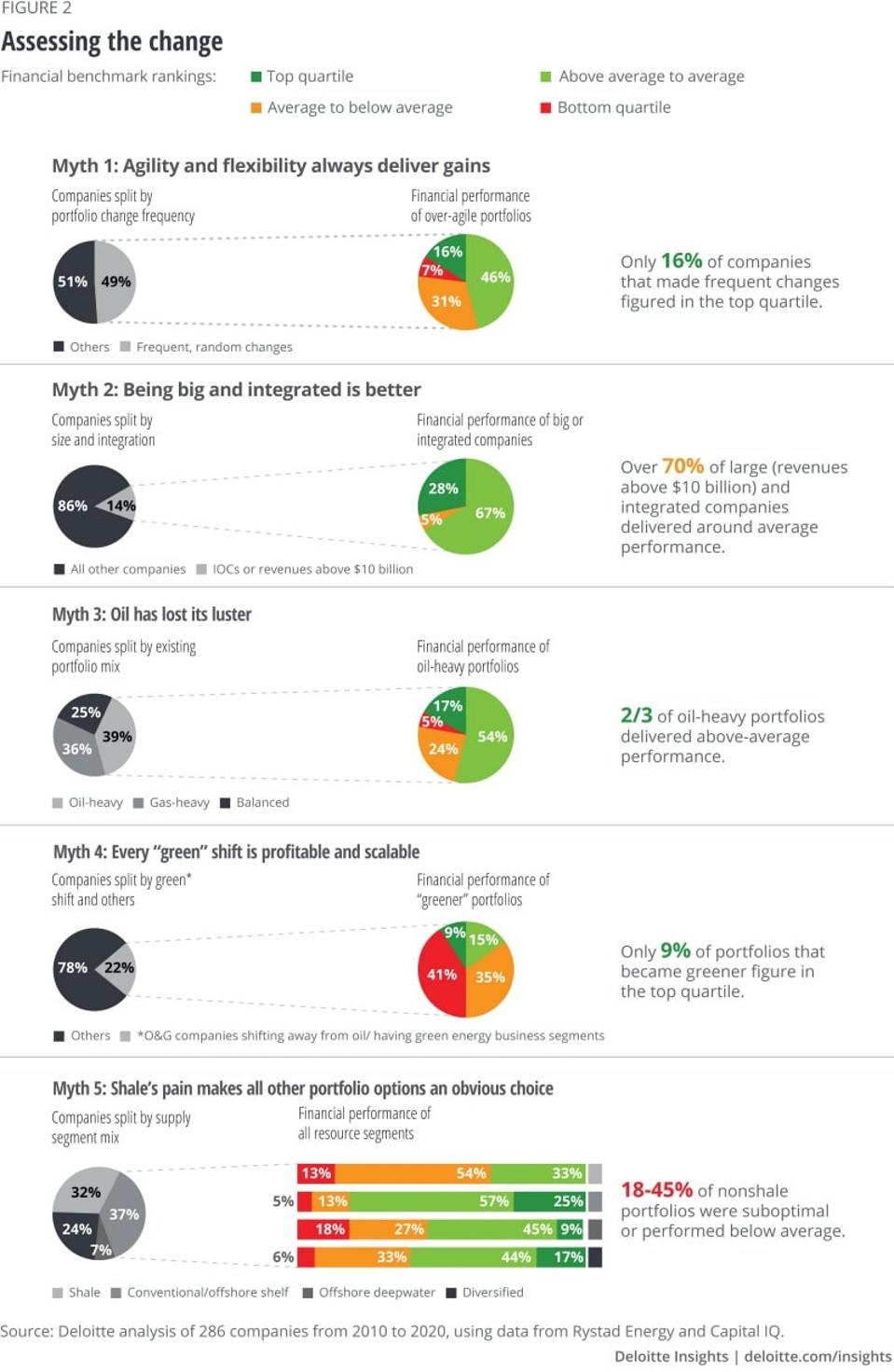 For companies who do move beyond the first question, Deloitte’s report provides insight on the remaining questions through a financial benchmarking process that looked at the financial performance of 286 companies over the past 10 years. As a result of that process, the firm debunks 5 major myths that have developed around the area of green transitioning. That process provides strong support for why some companies should consider moving into the green space while others will likely be better off focusing on repositioning and optimizing their oil and gas portfolios.