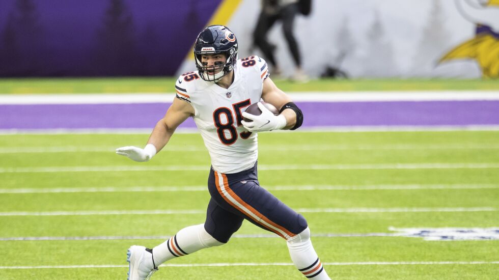 Kmet is the Bears’ second-leading receiver at 49 catches (sixth among NFL tight ends), 439 yards (ninth) and five touchdowns (second). He had a stretch of three strong games — 179 yards and two touchdowns on 21 catches — with Tyson Bagent at quarterback leading up to Fields’ return. Fields threw to Kmet four times, and he had three catches for 20 yards.