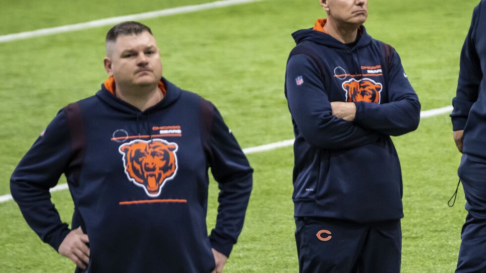 The Bears should be uniquely equipped to solve their roster’s biggest problem. Coming off a season in which no NFL quarterback was sacked more than Justin Fields, the men running their draft are both former offensive linemen.