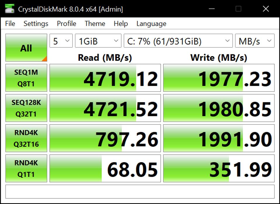 The 32GB of 4800MHz Dominator Platinum RAM (or Dom Plats, if you’re cool like that) is more than enough memory horsepower to play just about any modern game with a couple dozen Chrome tabs open. I would have preferred higher speeds here, though, since DDR5 is now reaching into the 6000MHz realm. DDR5 is still hard to come by for reasonable prices, so I can’t complain too much, though.