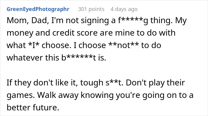 You see, after years of diligently saving for her first home, the woman started feeling pressure from her parents co-sign a mortgage for her younger sister—a decision that could jeopardize her own financial future. Given the sibling’s current living situation, that’s quite feasible, too.