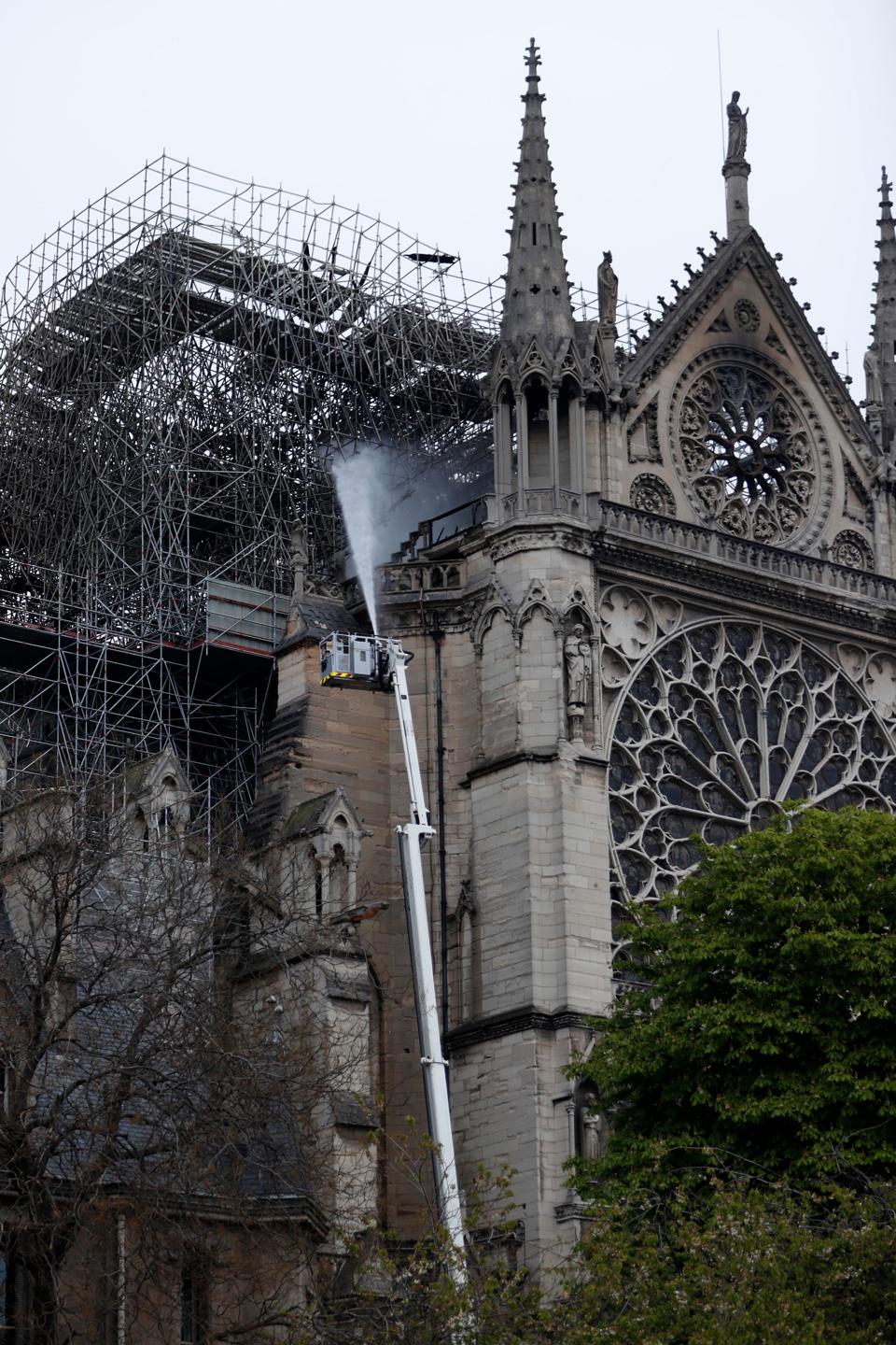 Initial evaluations indicate that the main structure had survived while most of the stone vault ceiling, known as “Le Foret” (the forest) because it consisted of hundreds of 13th-century oak beams as long as 110 meters, has been destroyed.