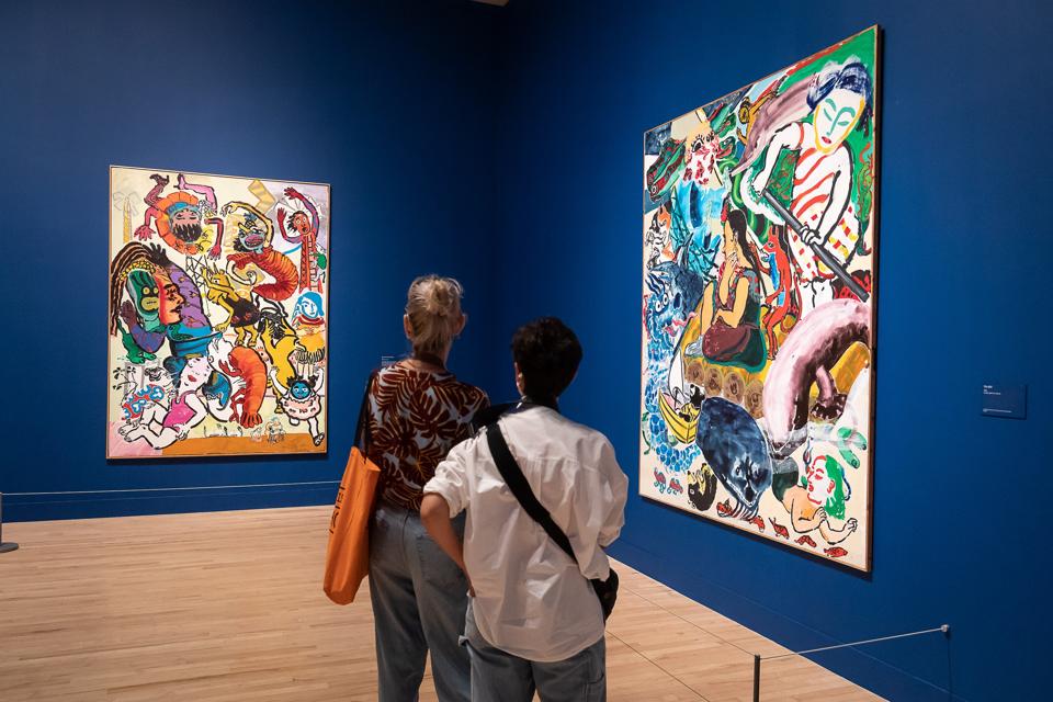 The exhibition begins with a selection of Rego’s rarely seen early works in which the artist first explored personal as well as social struggle. Her powerful work Interrogation, painted in 1950 when she was only fifteen years of age, asserted early on her commitment to denouncing injustices and standing up for victims. Paintings, collages and drawings from the 1960s to 1970s show her fierce opposition to the Portuguese dictatorship. For these pieces she drew upon a wide range of sources for inspiration, including advertisements, caricatures and news stories. She also explored folk tales as representations of human psyche and behavior, as with Brancaflor – The Devil and the Devil’s Wife in Bed 1975.