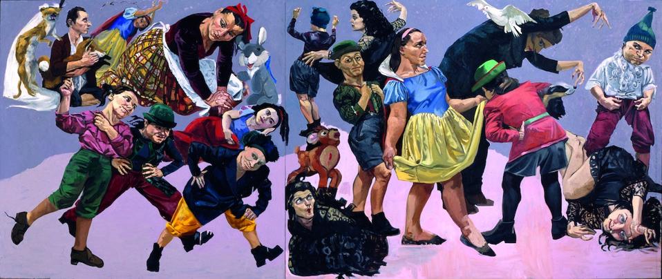 Rego abandoned collage in 1980 and returned to painting, combining childhood memories with her experiences as a woman, wife and lover. The exhibition includes major paintings from this period such as pieces from ‘The Vivian Girls’ series, in which girls rebel against a coercive society. Important works that established Rego’s reputation when first exhibited at the Serpentine Gallery in 1988 are here, including The Policeman’s Daughter 1987. Many of these pictures relate to Rego’s relationship with her husband, the painter Victor Willing, who for many years suffered from multiple sclerosis and died in 1988. One of her best known works, The Dance, set on a Portuguese beach, is intensely personal and took six months to complete. Painted the year her husband died, it features both the artist and her husband, along with her grandmother and mother.