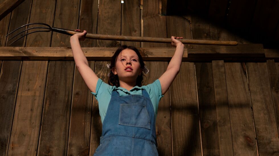 Zipping around on her bicycle, doing chores around the lonely family farm and even having quite the bizarre encounter with a scarecrow, young Pearl is like a bizarro version of Dorothy in “The Wizard of Oz.” Unlike the wide-eyed optimist Dorothy, however, Pearl is clearly unhinged, as evidenced by her tendency to kill small animals for amusement, bathe in front of her infirm father (Matthew Sunderland) and talk to the voracious alligator in the nearby lake as if he’s an old buddy in a Disney movie.