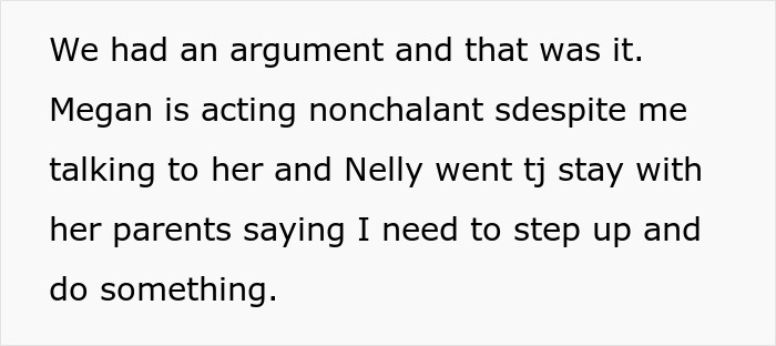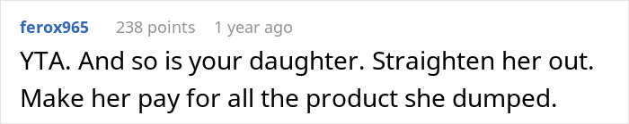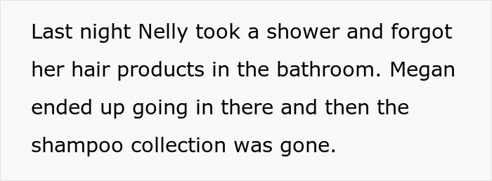 Once again, the OP did nothing to somehow resolve the conflict, allowing his daughter to go further and further. For example, when Megan demanded that Nelly not leave her shampoo and hair care products (the woman uses special products for sensitive hair) in the bathroom, the husband once more gave up and asked his wife to keep her shampoo in the closet in their bedroom.