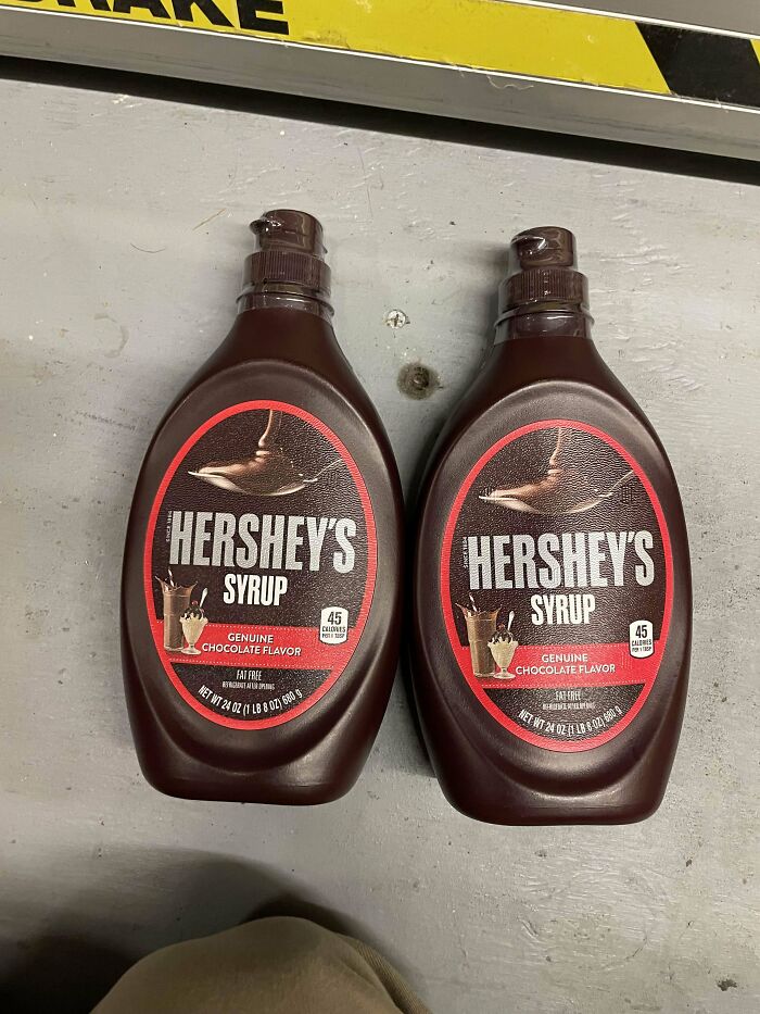 Peanut butter, maple syrup,beef jerky, chocolate cookies inferior to those that we normally have, really grossly sweet hamburger buns.