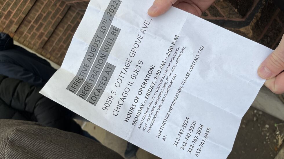 In the past, people could register at police headquarters, located at a relatively central location at 35th Street and Michigan Avenue. But the location recently changed, and now anyone who registers yearly or quarterly must go to an office on 91st Street on the South Side in Chicago’s Burnside neighborhood. Weekly registrants are assigned to other locations throughout the city.