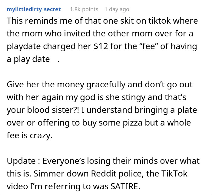 The OP was blindsided by the charge but paid it anyway without confronting their sister. They also mentioned that she has a large family of 6 kids to look after. Although they didn’t believe in fighting over the unexpected charge, it was quite an unpleasant situation to be put in. Bored Panda contacted Jodi RR Smith, the president and owner of Mannersmith, for her perspective on the situation.