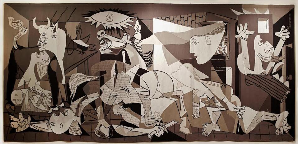 The original masterpiece, which is held by the Museo Reina Sofía in Madrid, is an unrivaled anti-war artwork exposing the Nazi aerial bombing of a Basque town. The monumental 25-foot-long canvas was used as a protest image by activists during the Vietnam War. Picasso painted the 1937 oil on canvas in about three weeks.