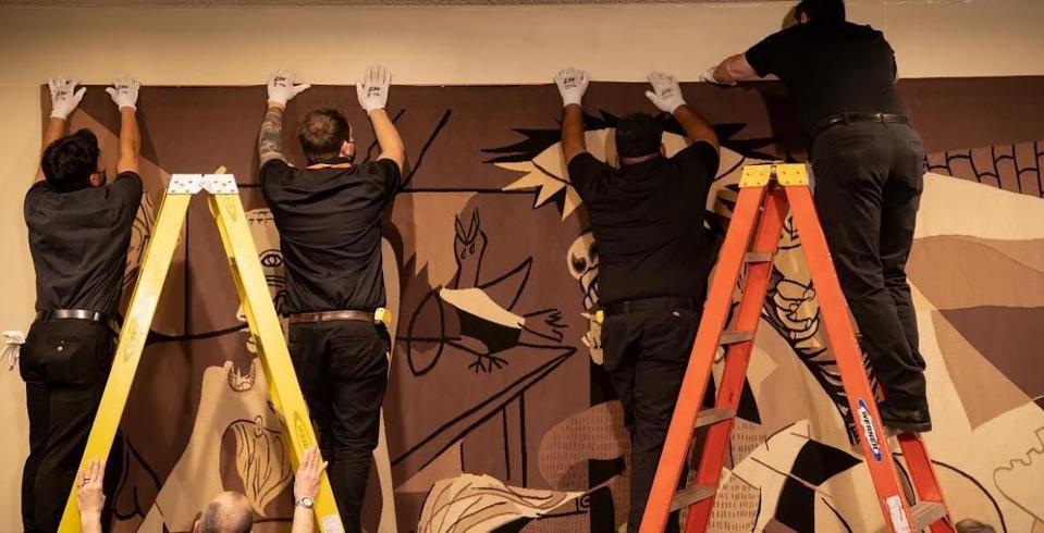 Picasso’s Guernica tapestry, a replica of his famous painting, has been rehung outside the United Nations Security Council Chamber in New York, after undergoing routine conservation led by the Textile Conservation Laboratory of The Cathedral of St. John the Divine which began in February 2021, Nelson A. Rockefeller, Jr. announced today. The Rockefeller family, the longtime steward of the tapestry, will be gifting it to the National Trust for Historic Preservation (National Trust), which plans to loan it for display around the world.