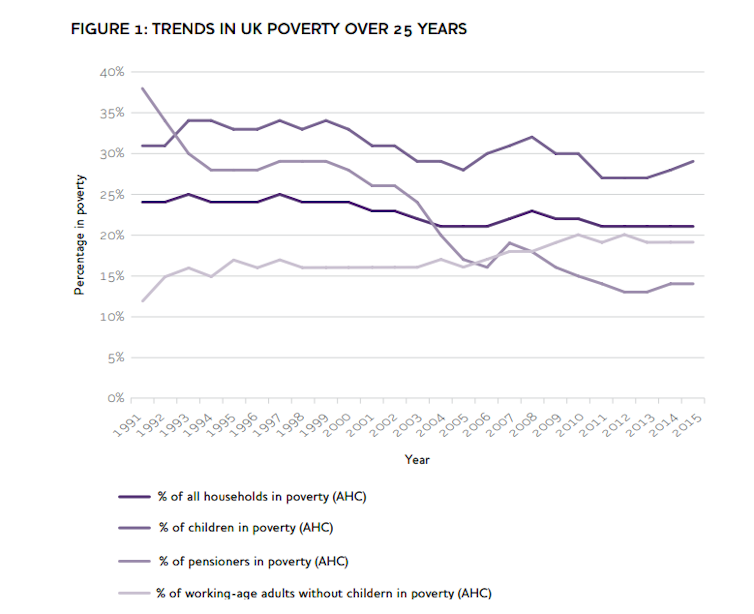 The Rowntree Foundation (created in his honour) has published surveys showing that in 2015-16, about 20% of the UK population lived in poverty, 60% in households including an inadequately paid full-time worker. The Resolution Foundation recently published similar figures for 2017-18, which showed that around 23% of the British population (excluding Northern Ireland) and 33% of children live in poverty.