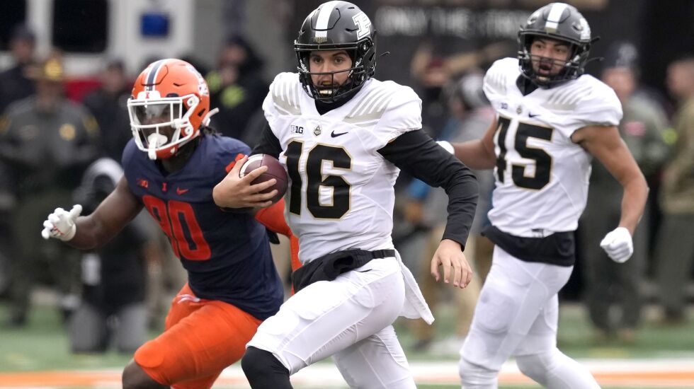 Purdue also became the first team to hold Illinois star Chase Brown to fewer than 100 rushing yards this season. The nation’s leader in rushing yards also appeared to suffer a leg injury late in the game, when he had to be helped off the field.