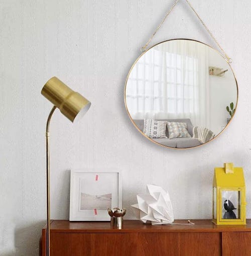 Mirrors — like this gorgeous hanging mirror — are a great way to make your house look more polished, while also reflecting light for a brighter, larger-looking space. This circular mirror has a golden frame, a golden chain to hang it on your wall, and a velvet-lined back so it doesn’t scratch or damage your walls.