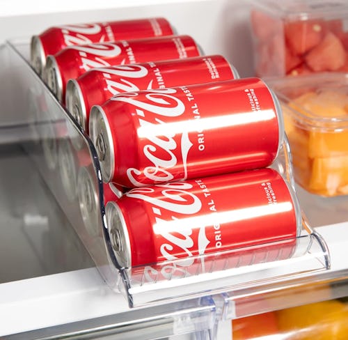 Organize your cans and take advantage of stacking space with this dispenser. It allows you to store nine standard cans or 14 slim cans on top of each other, and it automatically rolls them to the front as you remove them one by one. Plus, it has handles that make for easy grabbing and moving — just one handy feature that helped this bin get a 4.8-star rating on Amazon.