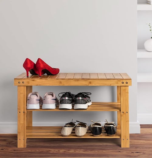 This bamboo shoe rack has three tiers to store your favorite sneakers, boots, and heels in an organized and stylish way. Each shelf can fit about four pairs of shoes and the whole shelf can hold up to 300 pounds, so you can use the top as a bench. Plus, it’s weatherproof — so you can use it indoors or outdoors.
