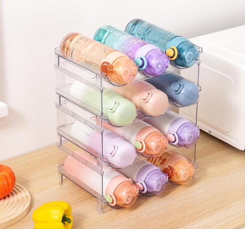 These stackable water bottle organizers that are so sturdy