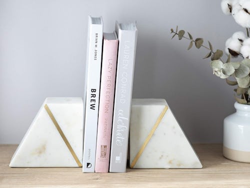 Adding decor — like these chic marble book ends — to your bookshelf is a great way to elevate your space and make things look more thoughtfully designed. They’re made of real marble, so they each weigh about 9 pounds, so they’ll even keep your hardcover novels upright. But they also have a nonskid bottom that won’t scratch your surfaces.