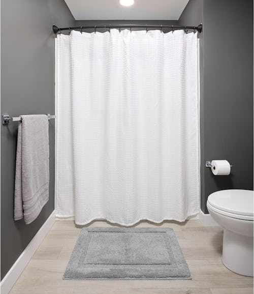Curved curtain rods like this one gives you 5.5 inches of extra space in your shower area, which makes a big difference whether you’re shampooing or shaving. It has a stylish and sleek matte black finish and an adjustable length to fit showers from 41 inches to 72 inches long. Plus it’s super easy to install and comes with all the hardware needed.