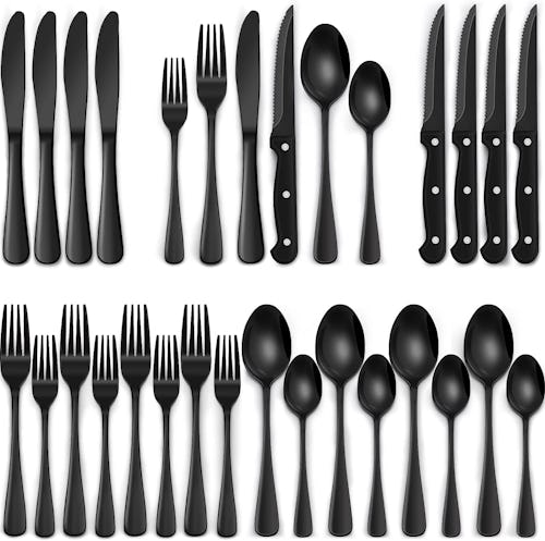 This popular 24-piece silverware set with a modern black finish