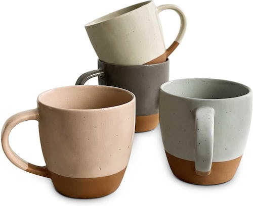 Available in a few different color combinations, these large latte mugs hold 16 ounces of your favorite coffee or tea and look homemade and stunning. They’re made of clay covered in a lead-free natural glaze, with a cute raw detail at the bottom that adds to the natural, no-fuss vibe. Each one also has a super wide mouth to show off your latte art or give you extra room for whipped cream.