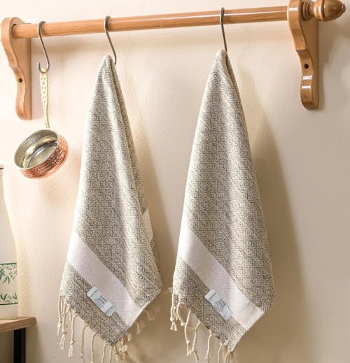 Elevate your kitchen or bathroom instantly when you swap out old, discolored, or mismatched hand towels for these sleek decorative ones. Not only do they absorb quickly and dry fast thanks to their Turkish cotton blend material, but they’re super soft and come in simple but eye-catching designs and colors with adorable woven fringe.