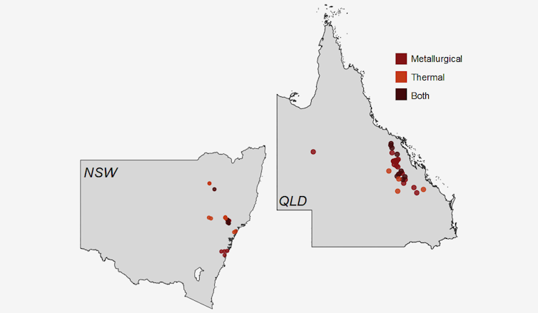 Coal mines in Queensland’s Mackay region and the NSW Hunter Valley