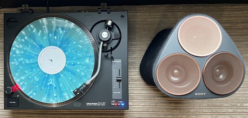 In the December 2021 edition of my Record Roundup I wrote about a new turntable release from Crosley. The company continues to expand its range of turntables that offer an upgrade path for those who want something more capable than Crosley’s traditional record players. The penultimate release as part of this effort was the Crosley C20 I reviewed in 2017. That was decidedly upscale, with a premium Pro-Ject design featuring an acrylic platter, a minimalist MDF plinth covered with beautiful Zebrano wood veneer, and an Ortofon cartridge. The Crosley C100BT takes a decidedly different approach. There’s a lot more plastic, but it costs half what the C20 did and still offers that all-important upgrade path from entry level record players. And, this one has the advantage of Bluetooth wireless connectivity.