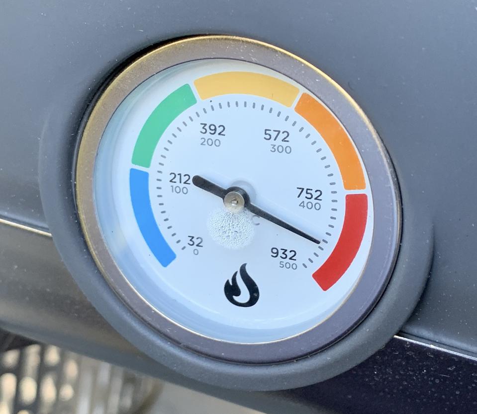 I followed the instructions and ran the oven for half an hour to burn off any residue, then cranked up the heat. It wasn’t very warm here (around 60ºF), but I found the oven warms up quite quickly. About 20 minutes got it up to well over 700ºF. With a few more minutes of burning I got this oven past 900ºF. It’s easy to tell exactly what the temperature is thanks to the built-in thermometer.