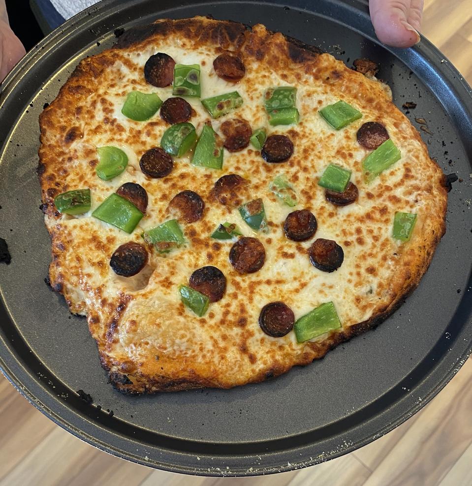 Once the oven is pre-heated, it’s pizza time. Gozney offers lots of recipes, but I stuck with a pizza dough recipe that I’m fond of. Gozney supplied a peel in the box. As always, getting your pizza to slide cleanly off the peel into the oven takes practice and dough that’s not sticky. I’ve been doing this with different pizza ovens here and there for a year and have yet to perfect my technique to the point where I have a perfectly round pie. However, a pizza doesn’t need to be symmetrical to taste good...