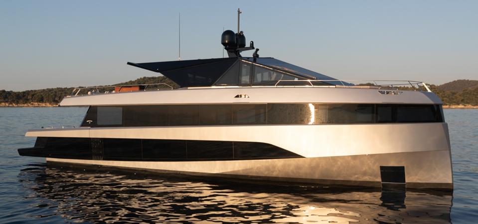Meanwhile, it’s innovative hull that measures 78-feet at the waterline and 88-feet overall was designed to cut through waves and is powered by four Volvo Penta D-13 IPS 1350 engines 1000 hp each.