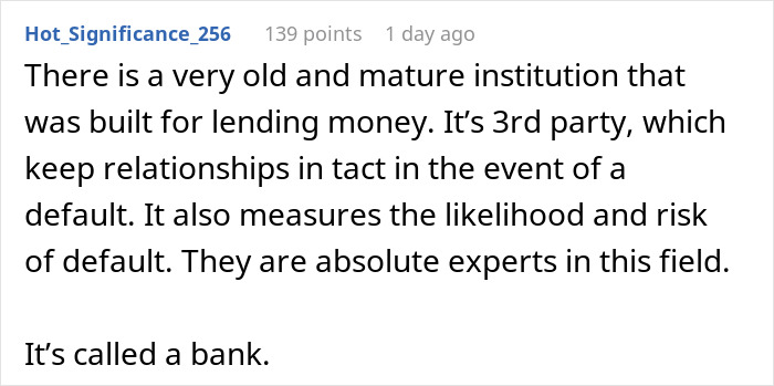Reddit was on fire with this one. Most users couldn’t believe this guy had the nerve to ask for such a massive loan, especially when he’s not exactly scraping by. It’s a fair point, though. Why is Liam asking Anna to fix his car when he’s clearly got the resources to handle it himself? This isn’t some reality show where the winner drives away in a fixed-up Corvette, right?