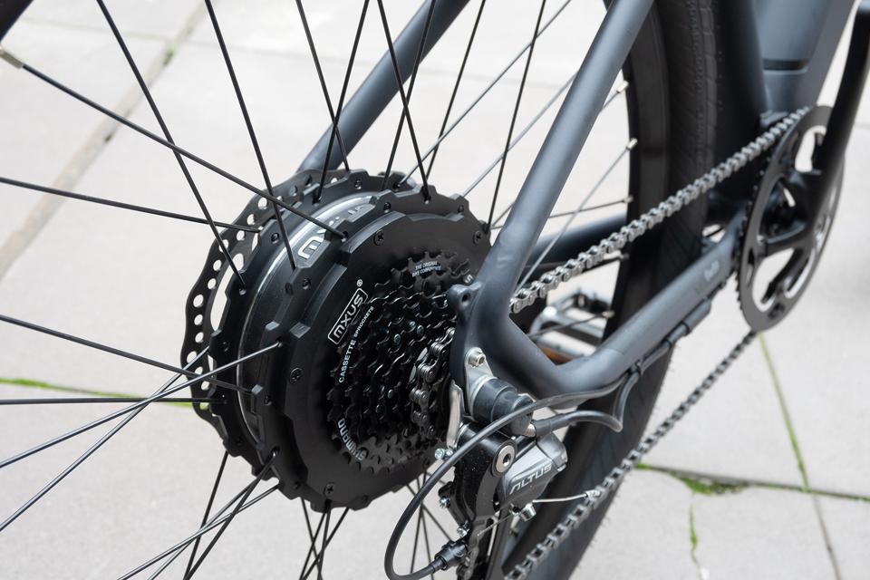 The bike also includes premium Schwalbe Super Moto X tires that should give you a long, trouble-free life (good, because I’m concerned the hub-mounted motor will make changing tires a hassle). And you don’t have to worry about the bike’s stopping power. The LMT’D features Tektro Orion HD-M745 4-piston 180mm hydraulic disc brakes in both the front and back, and they had a serious bite, able to bring me to a decisive stop from any speed.