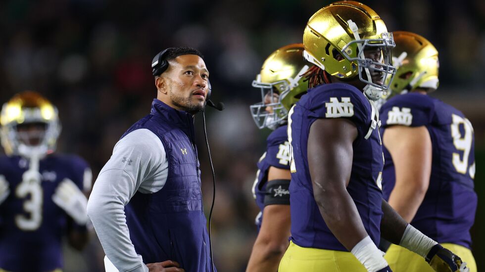 Those defensive shortcomings should’ve been enough to overcome, except coordinator Tommy Rees and the Irish offense couldn’t get out of their own wandering way. That was a complete dumpster fire of a game plan. Where was the ingenuity, the creativity, the certainty that the group had played with in wins at North Carolina and over Brigham Young the previous week in Las Vegas? Where was the grind-it-out/pound-it-out run game?