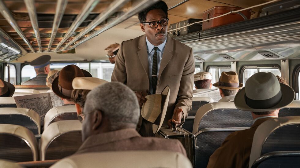 With screenwriters Julian Breece (“When They See Us”) and Dustin Lance Black (Academy Award winner for the screenplay of “Milk”) finding room for a myriad of real-life characters and a few fictitious players as well, “Rustin” has the trimmings of an epic film but appears to be working with a restricted budget, given the limitations of the crowd sequences. In fact, much of it could have worked as a stage play, as the majority of scenes take place in heated meetings, small apartments and humbly appointed organizational offices.